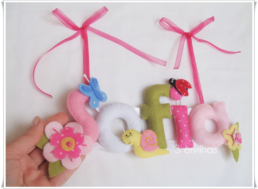Letra forrada com tecido a combinar com as restantes peças. (A letra foi-me enviada pela mamã).