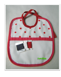 O babete ata com uma fita de cetim (mais fácil de atar que as de algodão) e tem um ponteado à volta em 2 cores lindas!!